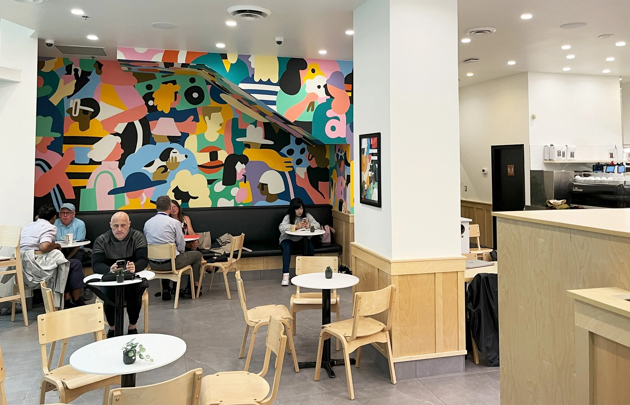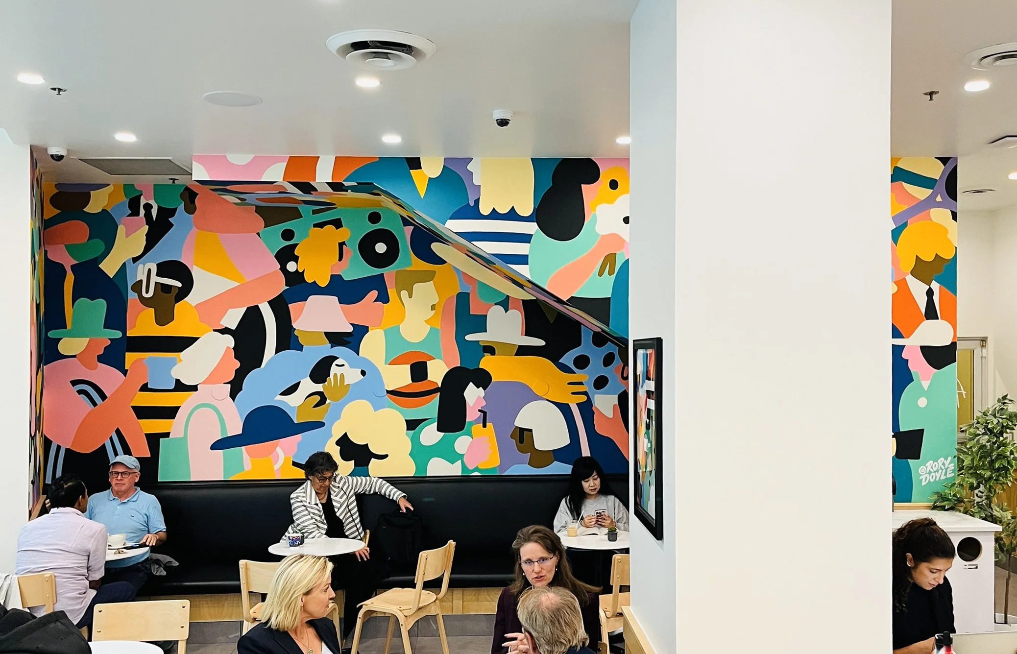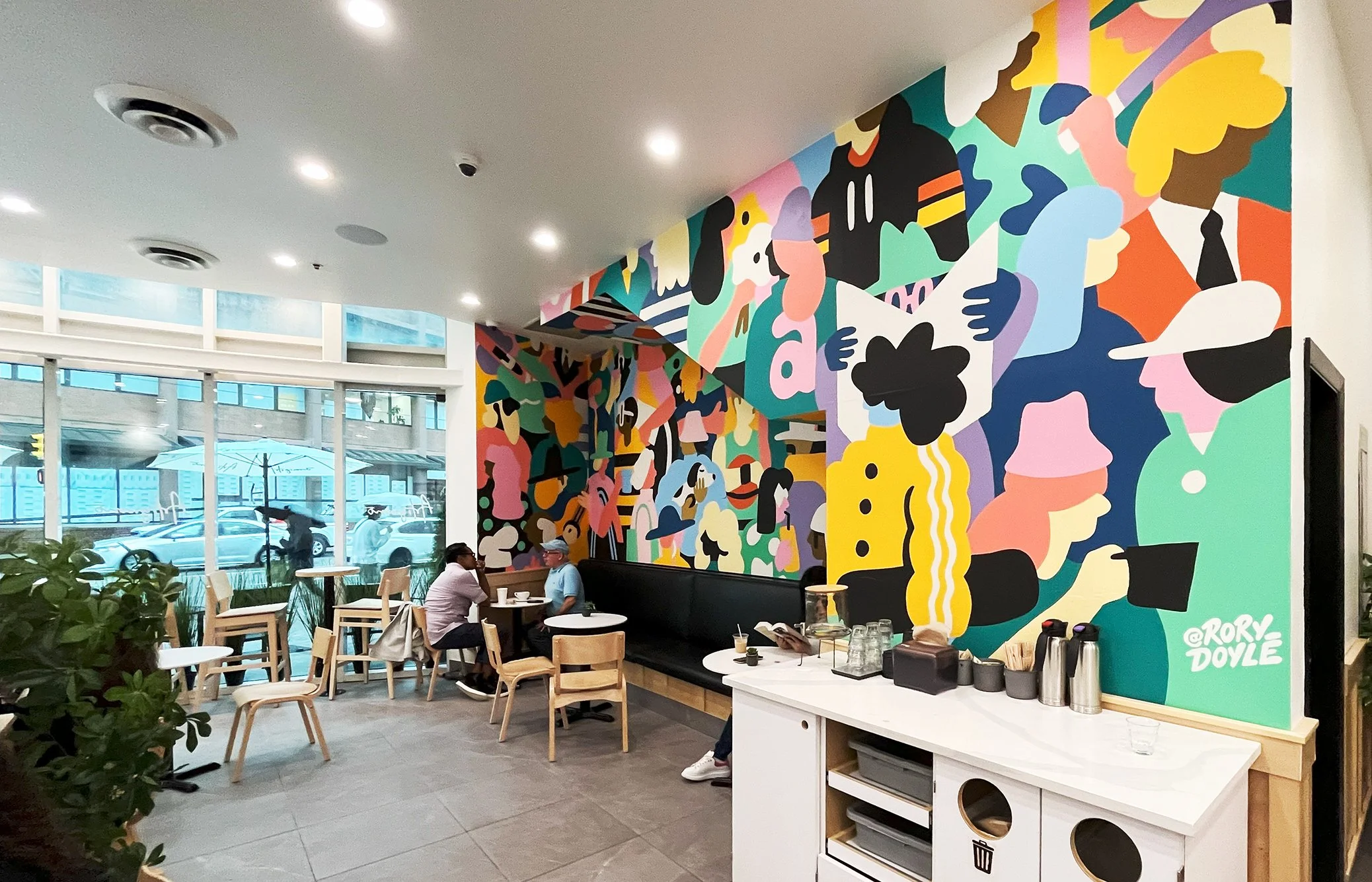 Café Artigiano commissioned me to design and install a mural in their Pender St. location in Vancouver. They wanted to inject a vibrant accent into a freshly rennovated room that spoke to the diverse group of patrons that frequent the café on a daily basis.