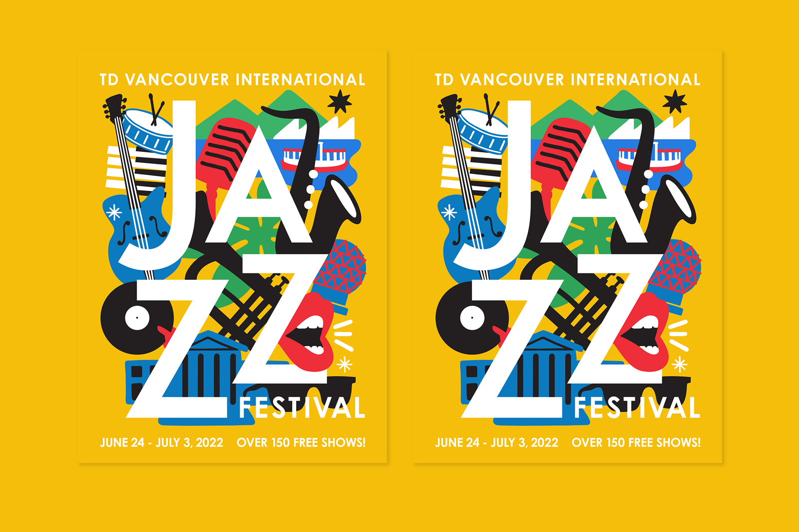 Commissioned by Massif Creative, my task was to create a series of illustrations and layouts for the 2022 Vancouver International Jazz Festival. With such a wide range of artists, Massif needed flexibility in the assets to cover both artist specific and high level communications. I illustrated a ‘hero’ design, which we then built a library of design elements from to implement across numerous applications such as shelter ads, event posters, brochures and online advertisements.